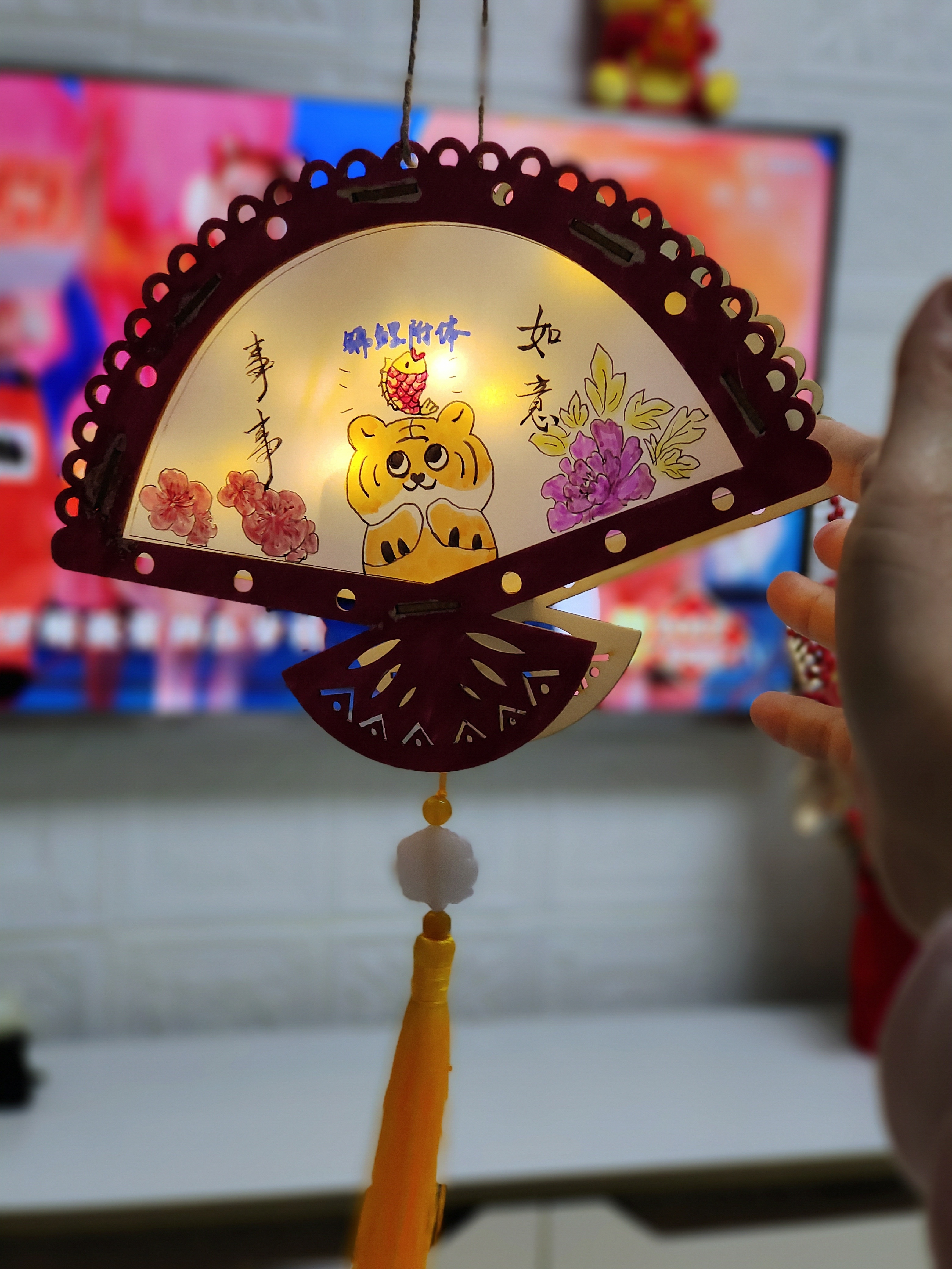 猜完燈謎,就到了大家最期待的做花燈環(huán)節(jié)。大家拿到材料包后,迫不及待地打開(kāi)研究起來(lái)。集團(tuán)的小哥哥小姐姐們小心翼翼修剪、鏤空好燈面,并仔細(xì)地將不同的燈面粘貼、拼接起來(lái)。最后給燈籠掛上流蘇,頂部裝好燈桿,內(nèi)部插上彩燈后,一個(gè)精美的元宵燈就誕生了。“這是我親手做的燈籠,象征幸福、祥和,簡(jiǎn)直太好看了!”做好燈籠的邵山成就感滿滿,興奮地和燈籠合影留念。