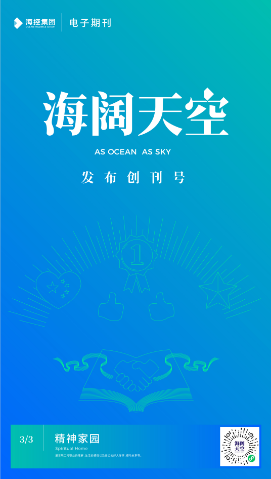 為進一步豐富集團企業文化載體,打造“協同、創新、活力”的海控大家庭,我們創立了“海闊天空”電子期刊,這是一個思想交流的平臺,像海洋一樣廣闊,像天空一樣高遠,在這里可以碰撞思想的火花;這是一個才華展示的平臺,海闊憑魚躍,天高任鳥飛,是金子就能發出耀眼的光芒;這是一個情感溝通的平臺,表達情感、分享快樂,構筑你我的精神家園。