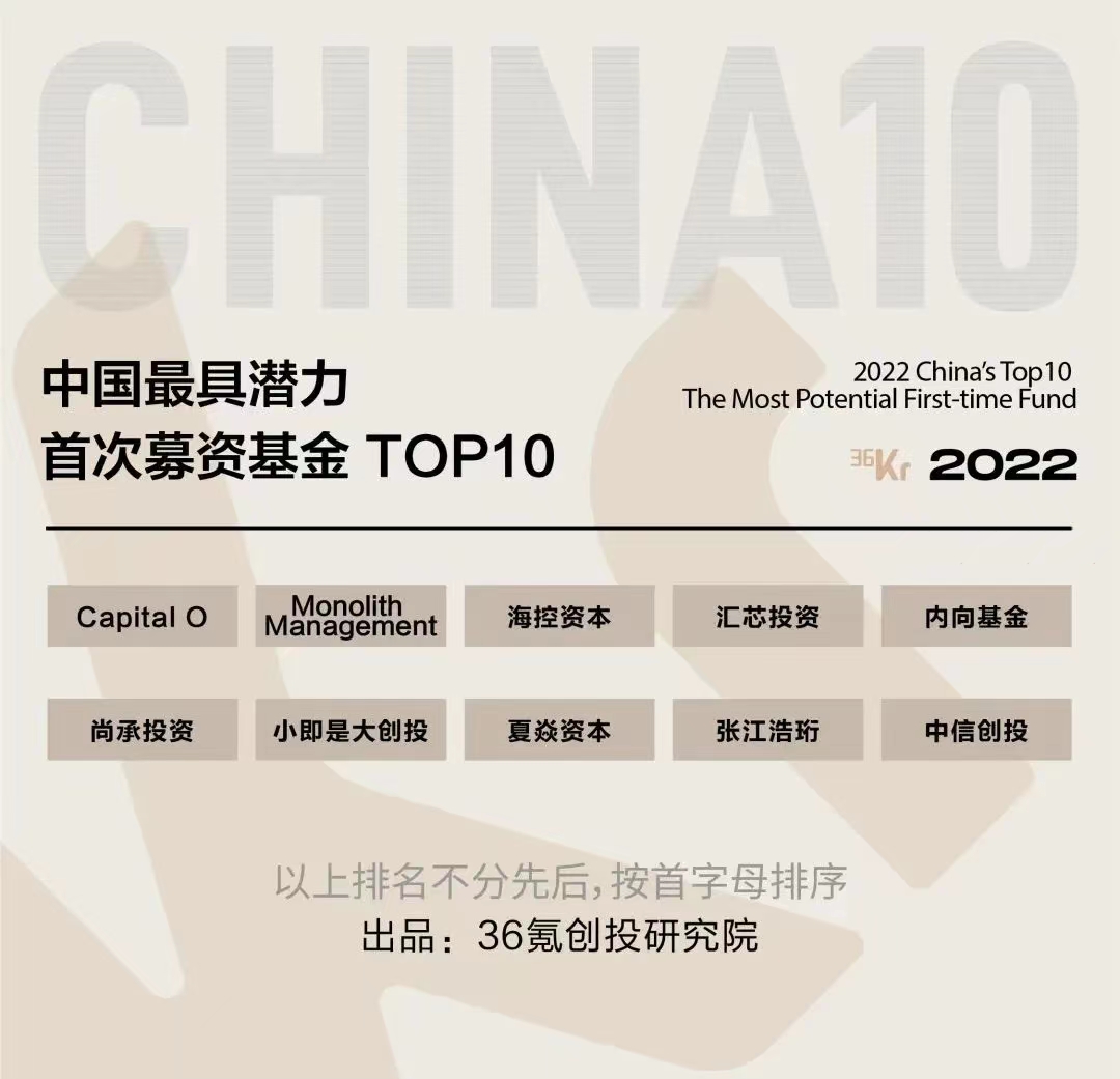 9月21日,36氪“2022中國基金合伙人未來峰會”在杭州舉行,會上揭曉了2022年度中國基金系列榜單,海控資本榮獲「2022年度中國最具潛力首次募資基金TOP10」榮譽,收獲行業權威認可。