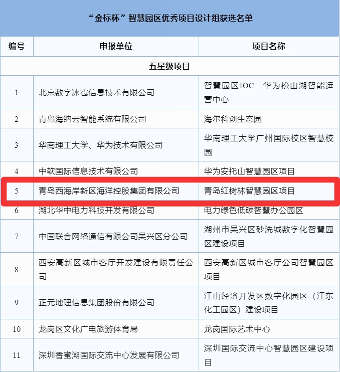 旅業動態 | 青島紅樹林智慧園區項目入選“金標杯”智慧園區優秀項目