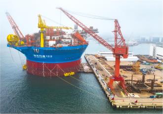 ▲亞洲首艘圓筒型FPSO“海上油氣加工廠”在海油工程青島場地成功下水并出塢